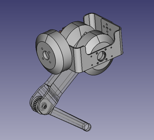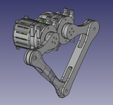 Before committing to the side-by-side 4-bar linkage leg for SMMB’s new actuators, I wanted to give a try with a more traditional mammal geometry. That was my preference to begin with, but my initial motor evaluation didn’t find any motors which had sufficient torque without a gearbox, and adding a gearbox in a simple way changed the dimensions enough that mammal geometries weren’t feasible. I spent some time looking for new options, and I found at least one which was promising, the XOAR Titan 6008.