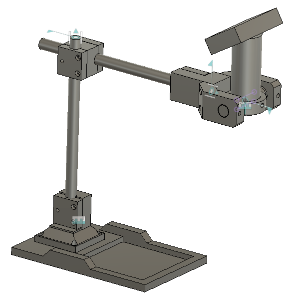 I wanted to improve the situation, so built a 3d printed mounting fixture to position the microscope head. It provides for a few more degrees of freedom than the factory issued one, and provides a lot more reach: