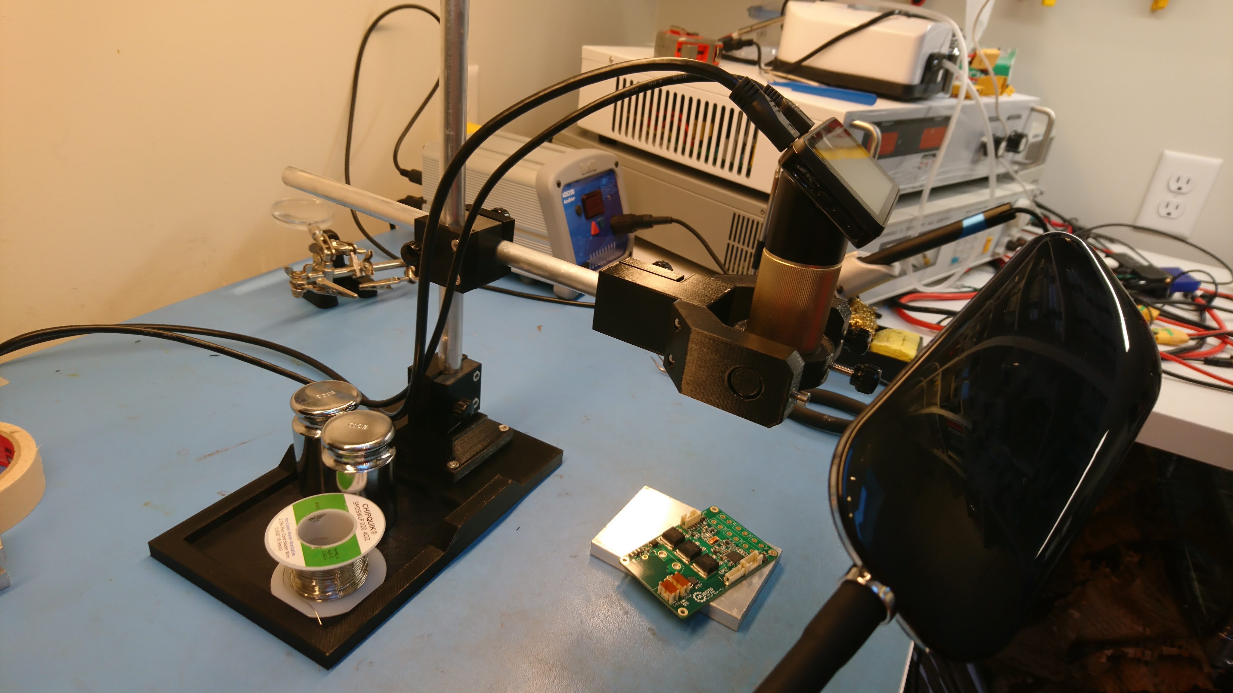 For the price, I’m definitely happy with it, but as I’ve been doing more soldering work, I’ve become less happy with the mounting stand. The arm it mounts to often does not reach far enough to get the optics over the part of the board in question, or the base is too tall or wide to fit under it. If you want to examine something from the side, you have to tip the entire base over. I have resorted to spinning the microscope around and counterbalancing the base with a large weight, which works for some definition of “works” but only improves the reach by a little bit.