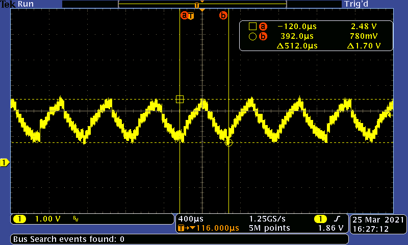 This shows that yes, the current is roughly triangular for the input square wave.