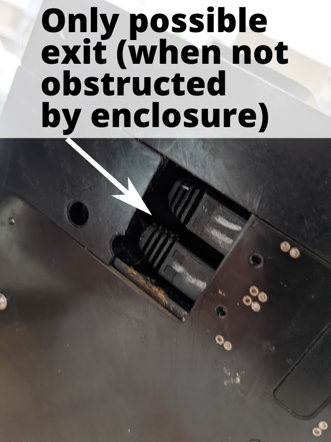 Basically every time I’ve taken the machine out of the enclosure, I’ve found that cavity so packed with chips that you wouldn’t think the cables could even more anymore. That is even with a thorough vacuuming after every part and often every operation. Plus the Y axis cables are just ethernet cables, which means once you unplug them, those chips can easily fill the RJ45 jacks.