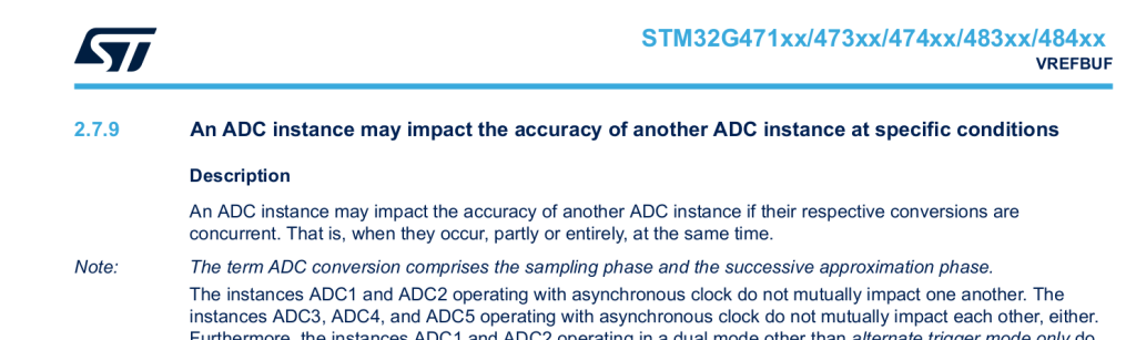 1: Do not execute ADC conversions concurrently. This is both not feasible in moteus, and in my experiments it does not completely resolve problems anyways.