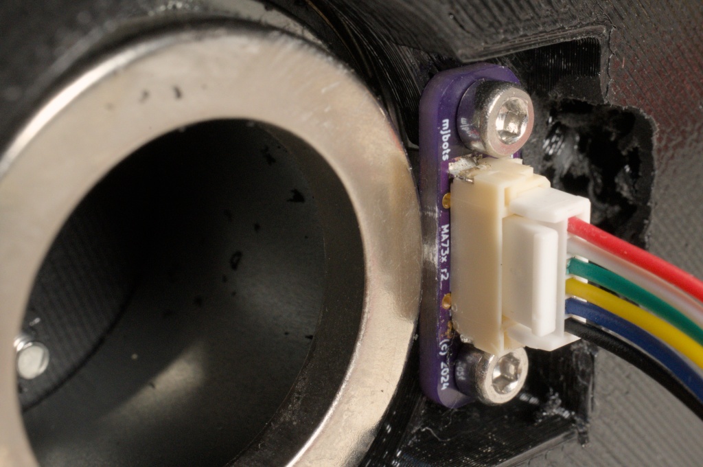 It’s time to announce support for yet another encoder type in moteus, this time the MA600 precision tunnel magnetoresistance (TMR) sensor. Compared to hall effect magnet angular sensors the MA600 has lower noise and less non-linearity. It has a SPI interface and operates from 3.3V. When used with moteus, it can be connected to AUX2 on moteus-c1 and moteus-n1, and to AUX1/ENC on moteus-c1, moteus-n1, and moteus-r4. Support is available in firmware version 2024-10-29 and newer.