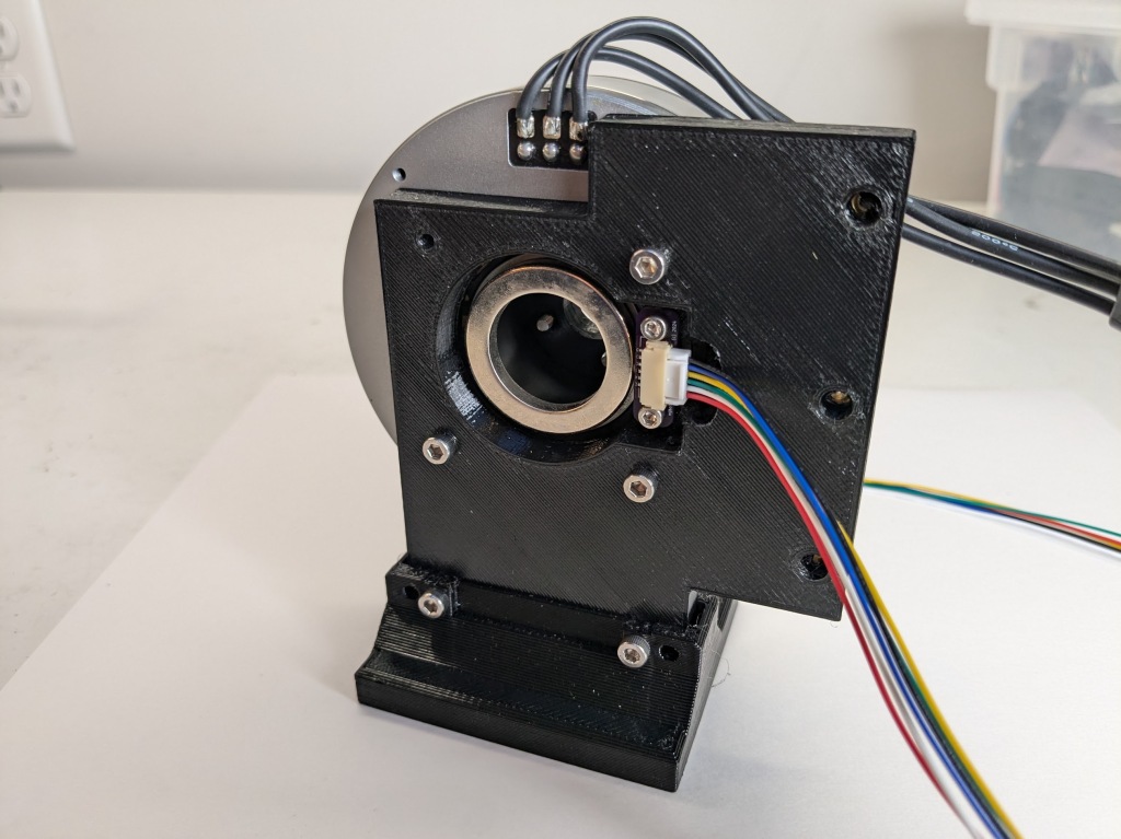 And for good measure, it can hold an AksIM-2 magnet and reader on the other side of the motor. That way we can do some “ground truth” tests with the presumably much less accurate single pole off-axis encoder.