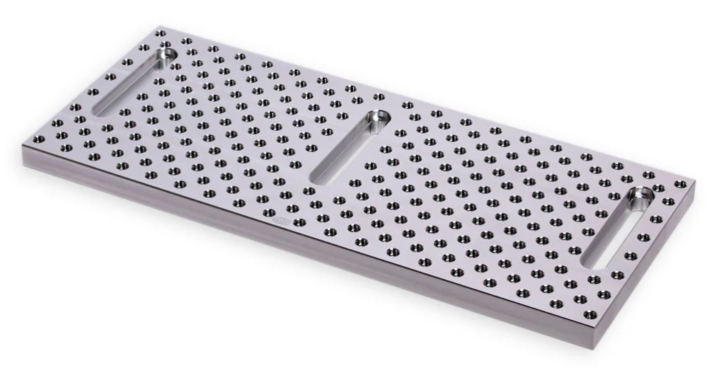 For the fixture plate, the new version uses one from Sanders Machine Works, their Universal Aluminum Fixture Tooling plate, the 14" M6 version. This is a stocked product that is likely to remain available for some time and as a bonus, can be obtained in a 20" version if a longer stackup is needed in the future.