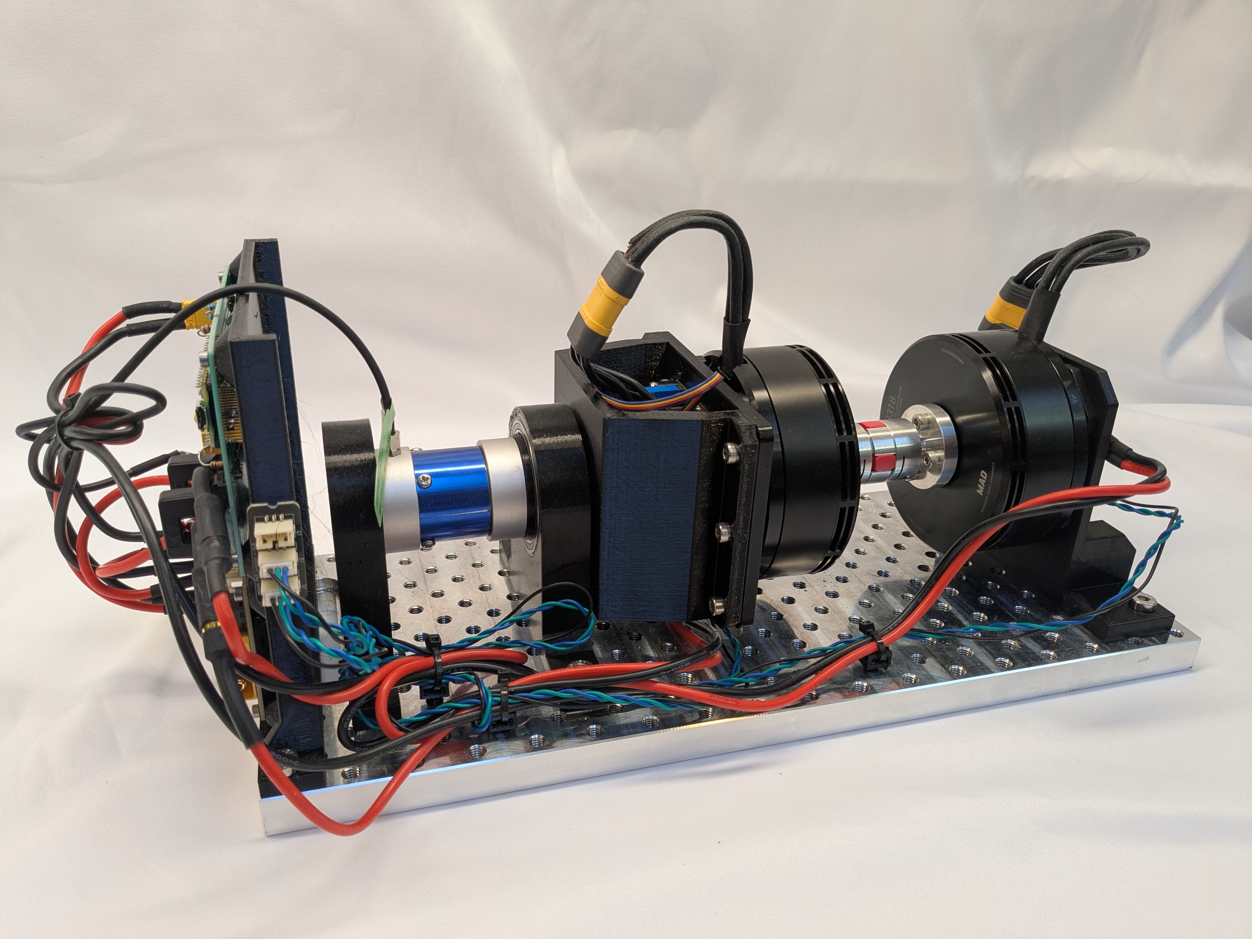 Long ago, in a workshop not so far away, I built a dynamometer for characterizing moteus controllers and motors. In the intervening 5 years, we released the moteus-r4.11, moteus-n1, moteus-c1, and now the moteus-x1! For each of these controllers, and the many firmware releases in between, this fixture has still served as a critical part of the validation procedure for new firmware releases and new product releases. However, it was time for a few improvements when tackling the moteus-x1, so here is a brief write up of the new result.