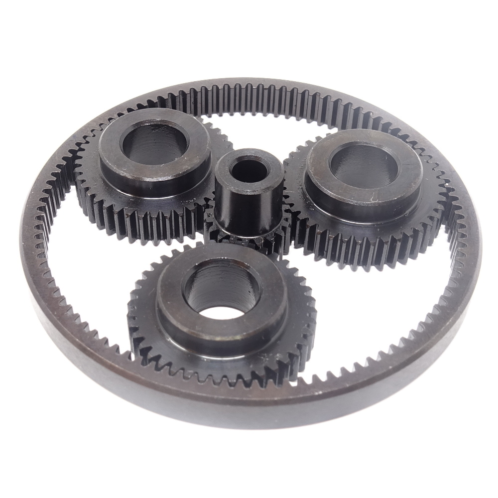 The qdd100 servo uses a planetary geartrain as the transmission reducer. This consists of an outer ring gear, an inner sun gear connected to the rotor as the input, and 3 planets connected to the output. The tolerances of these gears directly impacts the performance of the servo, namely the backlash and noise.
