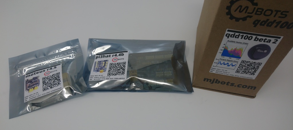 For most of mjbots’ existence, all of our products were labeled with a dependable, if lackluster, Brother P-Touch label maker. In line with other packaging improvements, I recently upgraded that labeling setup to bigger, higher resolution, and full color!
