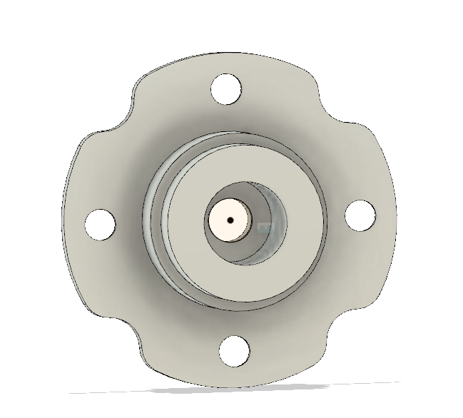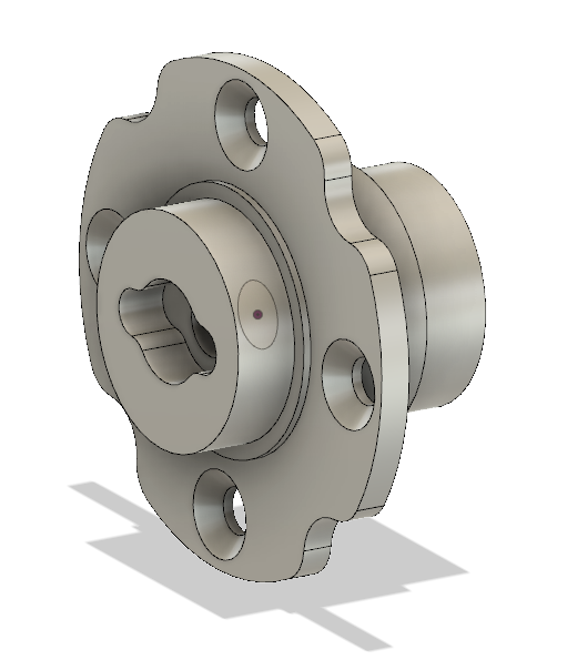 The front housing is the most complex machined piece in the moteus servo mk2, as it was in the mk1. It is relatively large and mates with many other components with the associated tight tolerance surfaces. For mk2, the front housing is even larger in diameter, but otherwise has the same basic features.